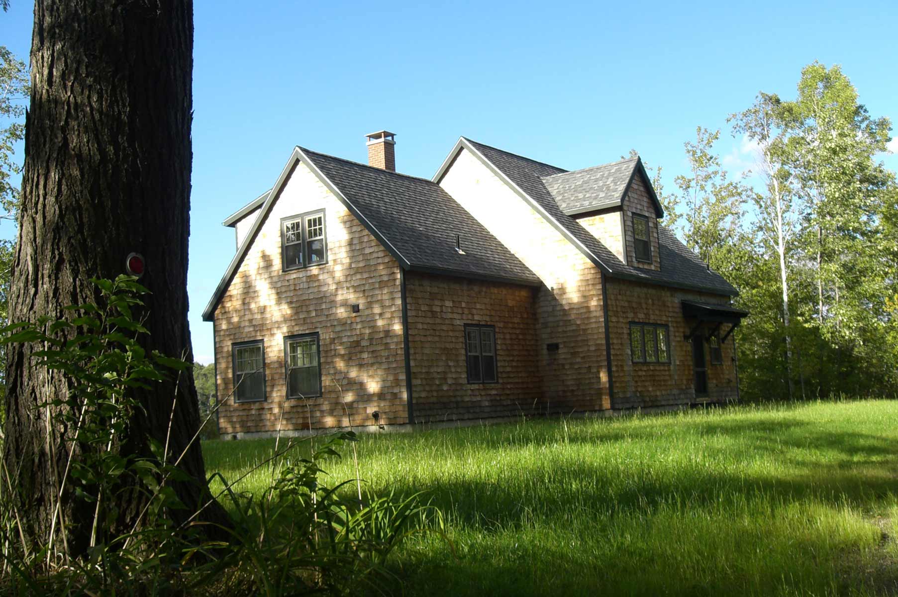 The main level of this simple summer house divides predictability into open and airy public spaces in the large volume and the more private master suite in the smaller volume. Under sloping ceilings, the upper level holds a bedroom, a bath and a room that stretches across both volumes creating a space large and quirky enough to accommodate children’s bunks, games and dreams.